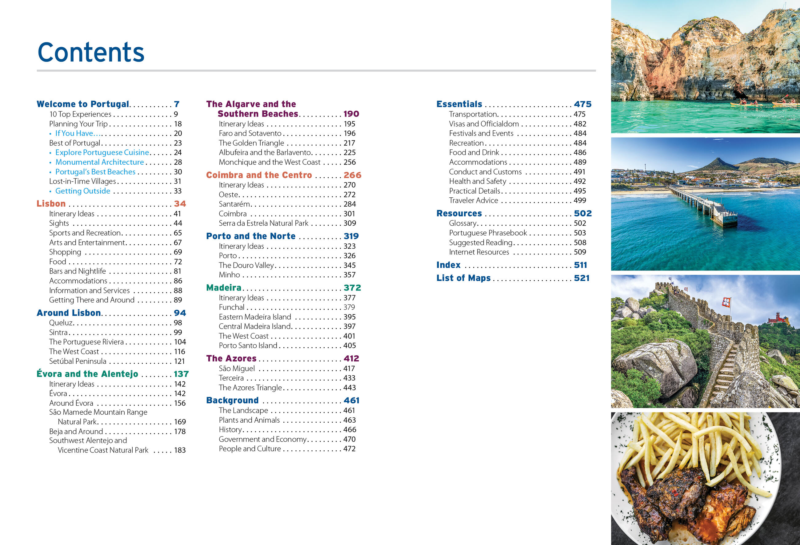 - In-depth coverage of Lisbon, the Algarve, Évora and the Alentejo, Porto and Northern Portugal, Coimbra and Central Portugal, Madeira, and the Azores